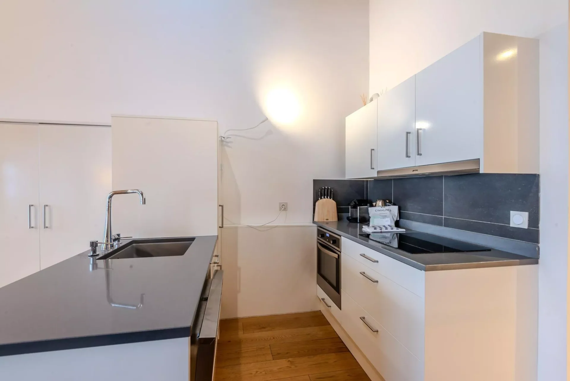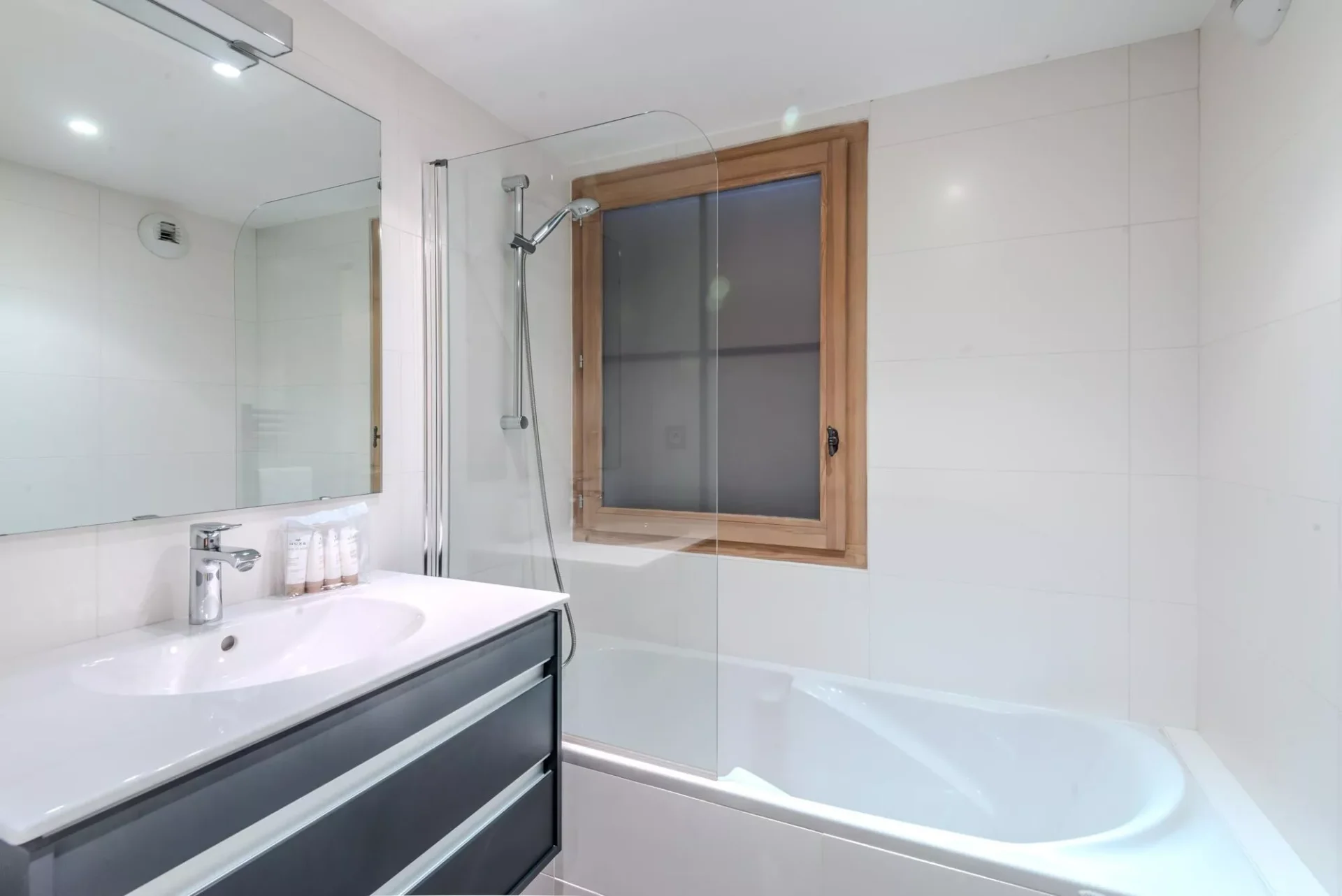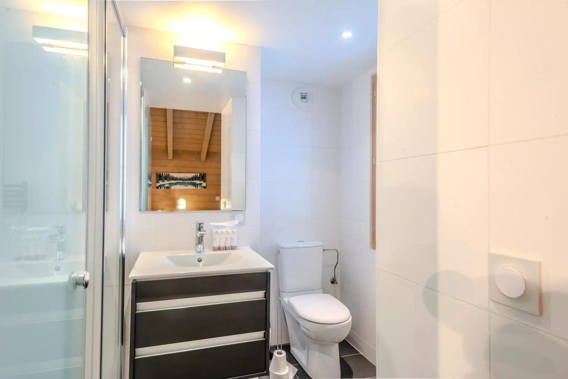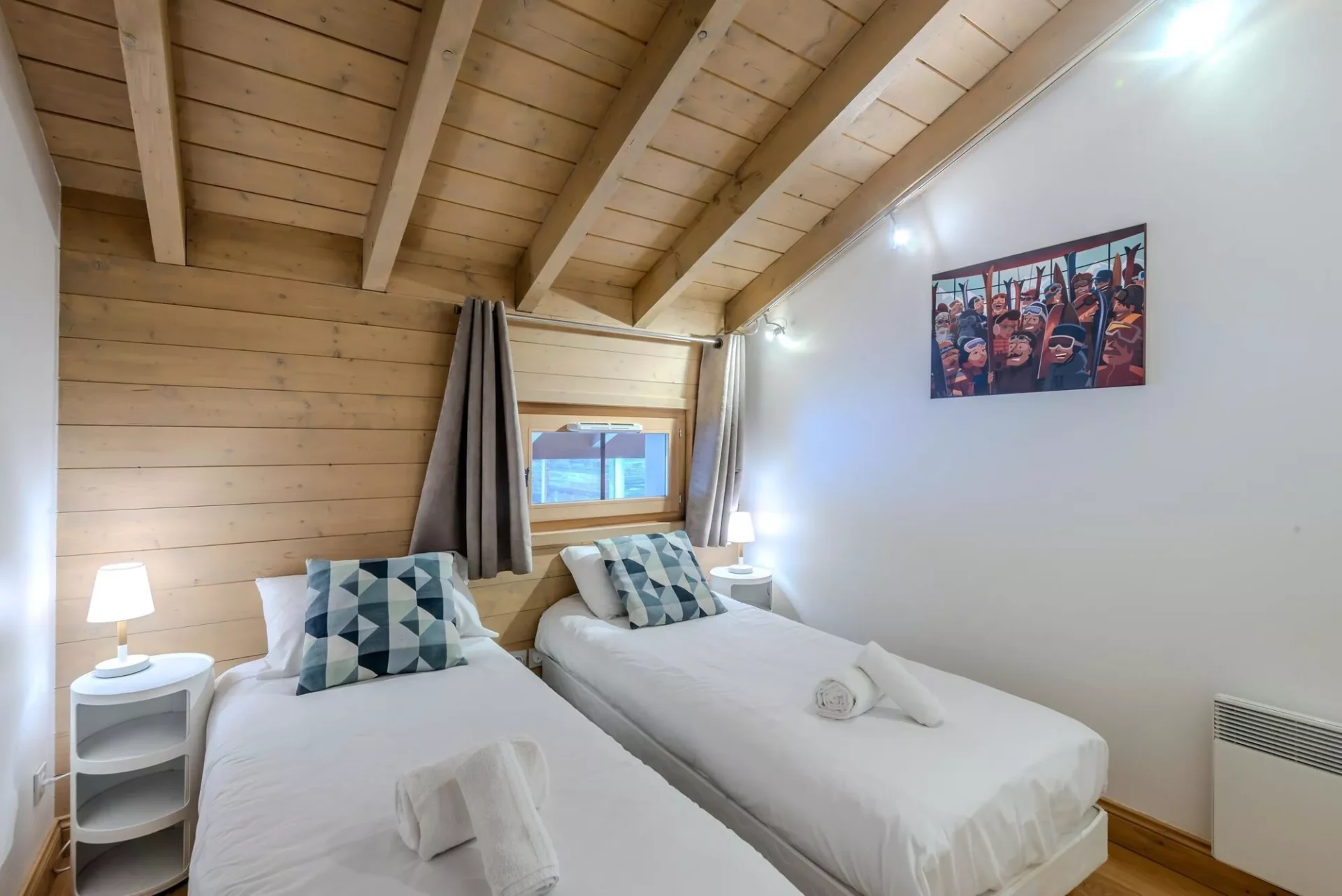 This mountain apartment stands out for its high ceilings and bright, airy atmosphere. It accommodates up to five guests, featuring a triple bedroom and a second room with either two single beds or a double bed. The cathedral-style living area, warmed by a wood stove, combines an open-plan lounge, dining space, and a kitchen with two counters. A south-facing balcony provides panoramic vistas of Morzine, the Pléney, and the Pointe de Nyon.