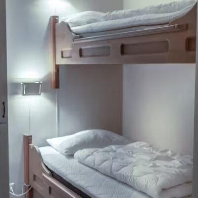 2 bedroom apartment – sleeps 1-4: Double bedroom, second bedroom with bunk beds, living room, private shower and WC.