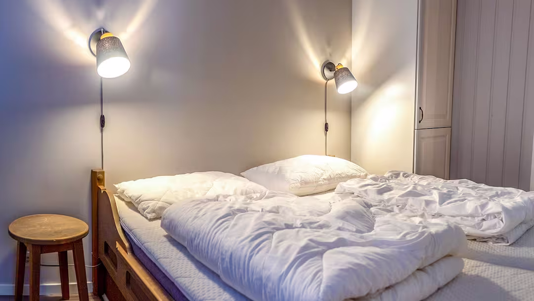 1 bedroom apartment – sleeps 1-2: Double bedroom, living room, private shower and WC.